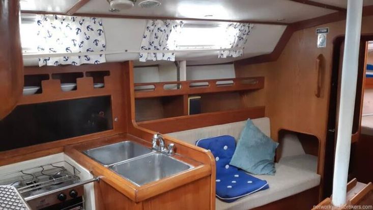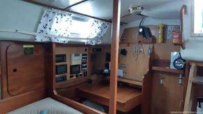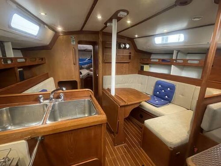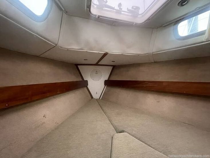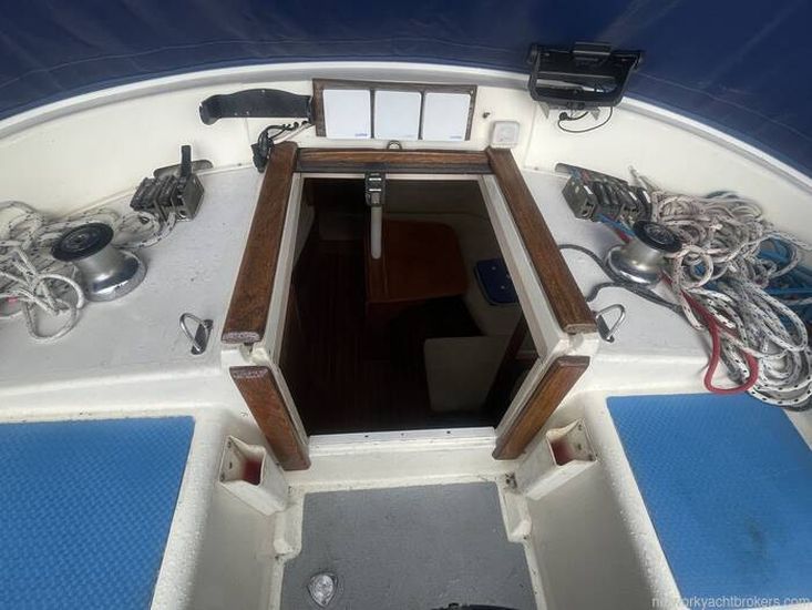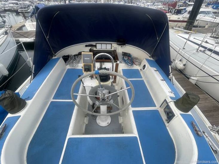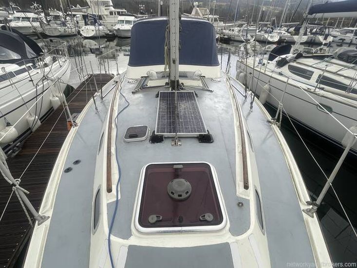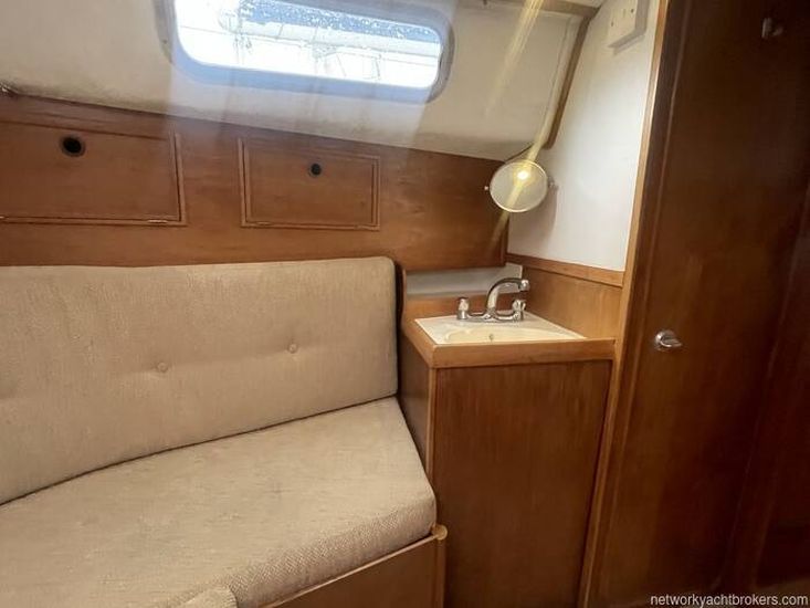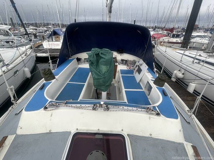 The Westerly Seahawk 34 was designed as a spacious centre-cockpit family cruiser, known for its excellent sailing performance and high-quality construction. Its interior boasts standing headroom throughout. The saloon is bright, airy, and finely finished, featuring a large double-berth aft cabin with a seat and vanity unit, along with a well-designed forward twin layout.