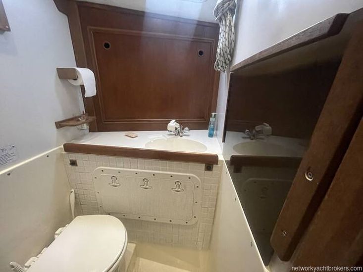 There is a calorifier, heated from the engine and also fitted with an immerser for use when shore power is available. The water system is pressurised by a Whale pump. The calorifier, expansion tanks and pressure pump are located in the deep cockpit locker.